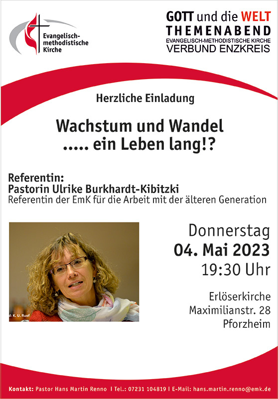 Die Reihe „GOTT und die WELT Themenabend“ wird von den fünf Evangelisch-methodistischen Bezirken im Verbund Enzkreis gestaltet.